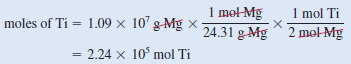 – Next, we calculate the number of moles of Ti formed from 1.09 × 107 g of Mg. The conversion steps are:
