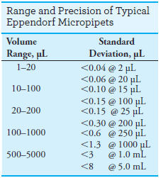 The range of volumes and precision of typical pipets of this type are shown in the margin.