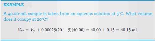 – The coefficient of expansion for dilute aqueous solutions (approximately 0.025%/°C) is such that a 5°C change has a measurable effect on the reliability of ordinary volumetric measurements.