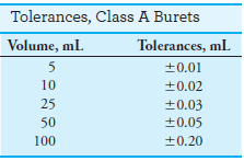 – Class A glassware is manufactured to the highest tolerances from Pyrex, borosilicate, or Kimax glass (see tables).