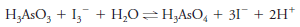 – A solution of identical color intensity (and hence identical triiodide concentration) can also be produced by adding 1 mmol of arsenous acid, H3AsO3, to 100 mL of a solution containing 1 mmol of triiodide ion (see color plate 1a).