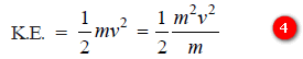 – The K.E. of the particle of mass m and velocity (ν) is given by the relation: