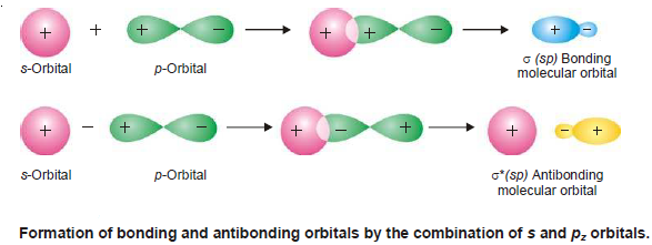 – s and pz-orbitals can also combine in a similar way along internuclear axis to form bonding and antibonding molecular orbitals as shown in the following figure: