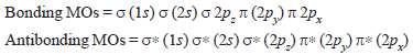 – The π* (2py ) and π* (2px) antibonding MOs have higher energy than their corresponding molecular and atomic orbitals.