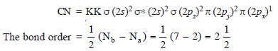 – Also, there is one unpaired electron in CN molecule. It is paramagnetic in nature.