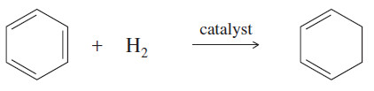 – In practice, this reaction is difficult to stop after the addition of 1 mole of H2 because the product (cyclohexa-1,3-diene) hydrogenates more easily than benzene itself. Clearly, the benzene ring is exceptionally unreactive.