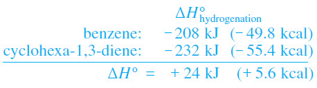– The following Figure shows how the experimentally determined heats of hydrogenation are used to compute the resonance energies of cyclohexa-1,3-diene and benzene, based on the following reasoning: