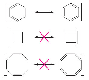 – The following Figure 16-3 shows proposed benzene-like resonance forms for cyclobutadiene and cyclooctatetraene.