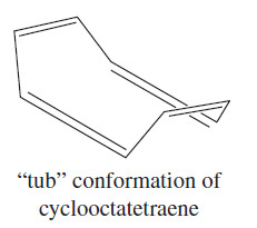 – It is most stable in a “tub” conformation, with poor overlap between adjacent pi bonds.
